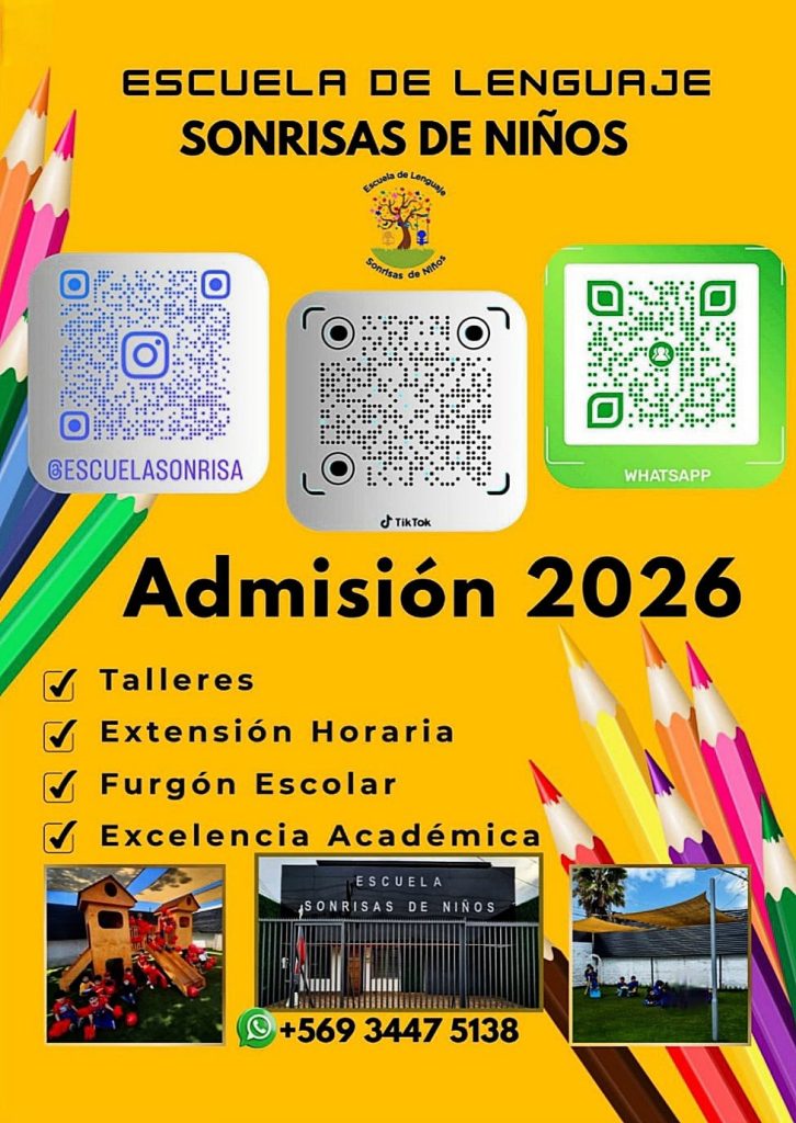 La institución cuenta con extensión horaria, distintos talleres, furgones para el traslado de los estudiantes y excelencia académica. Para conocer más del proceso de admisión 2026 contáctate al +569 3447 5138