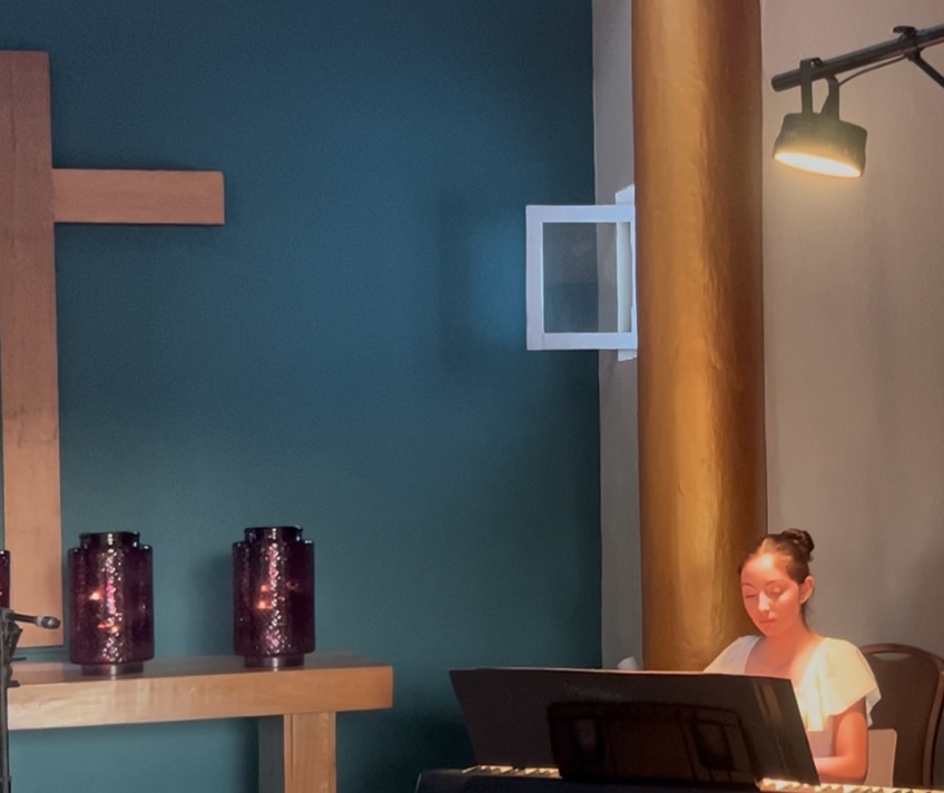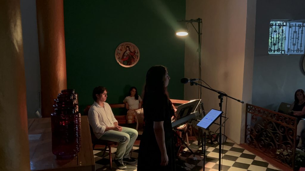 La apertura del concierto fue trabajo de la pianista pircana Florencia Vargas, con una serie de interpretaciones en piano, recibiendo un cálido aplauso por parte de los asistentes.