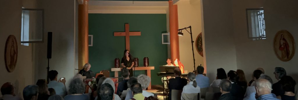 La función atrajo a tantos vecinos y vecinas que el centro debió habilitar sillas en el exterior de la capilla para que los asistentes pudieran disfrutar plenamente del evento.