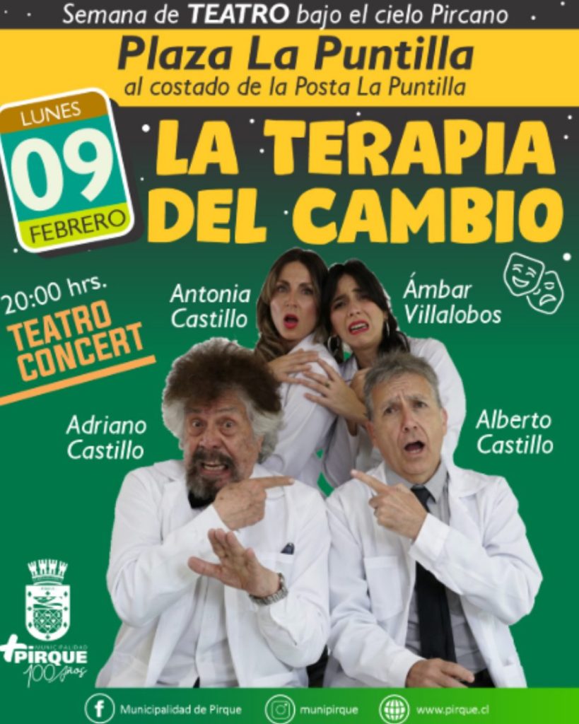 Una excelente panorama cultural se vive esta semana en Pirque. Se trata de la “Semana de Teatro bajo el cielo pircano”, una iniciativa gratuita que está llevando la obra “La Terapia del Cambio” a distintos sectores de la comuna, con funciones al aire libre pensadas para disfrutar en familia y comunidad.